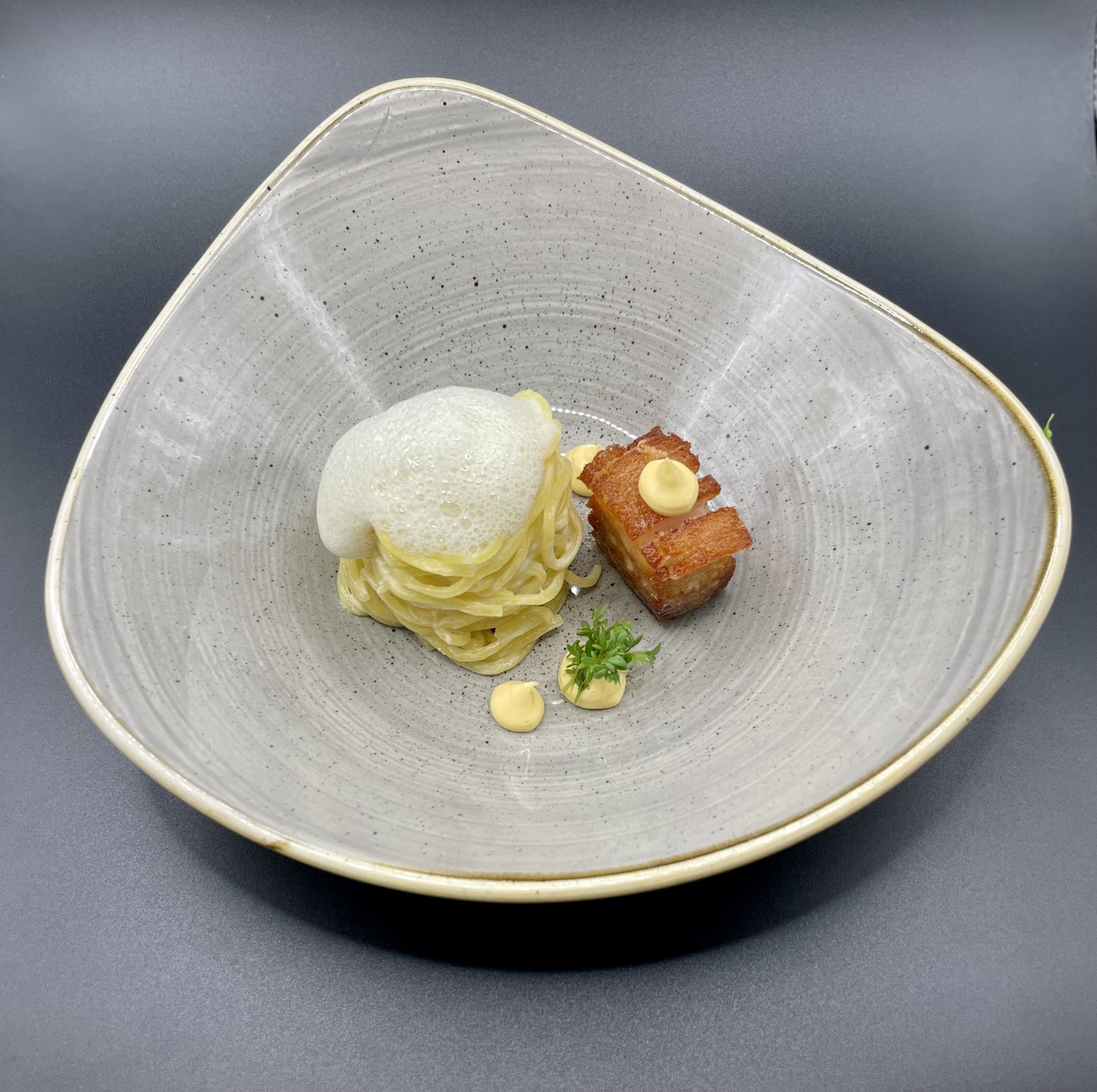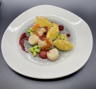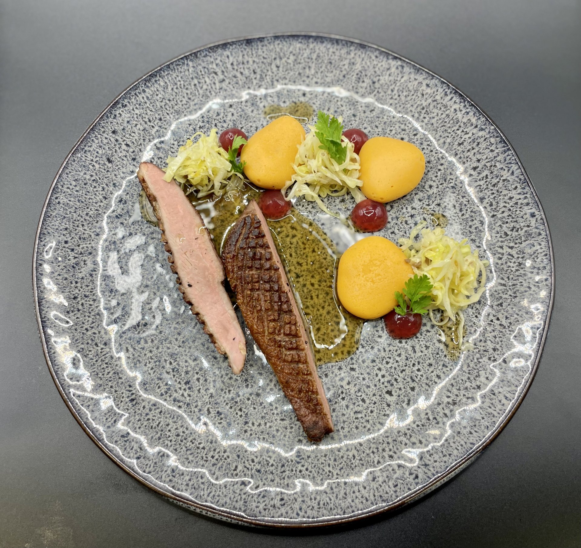 Pochierter Kabeljau | Blutwurst | Chorizo | Ananas | Spitzkohl | Fondant – Kartoffeln